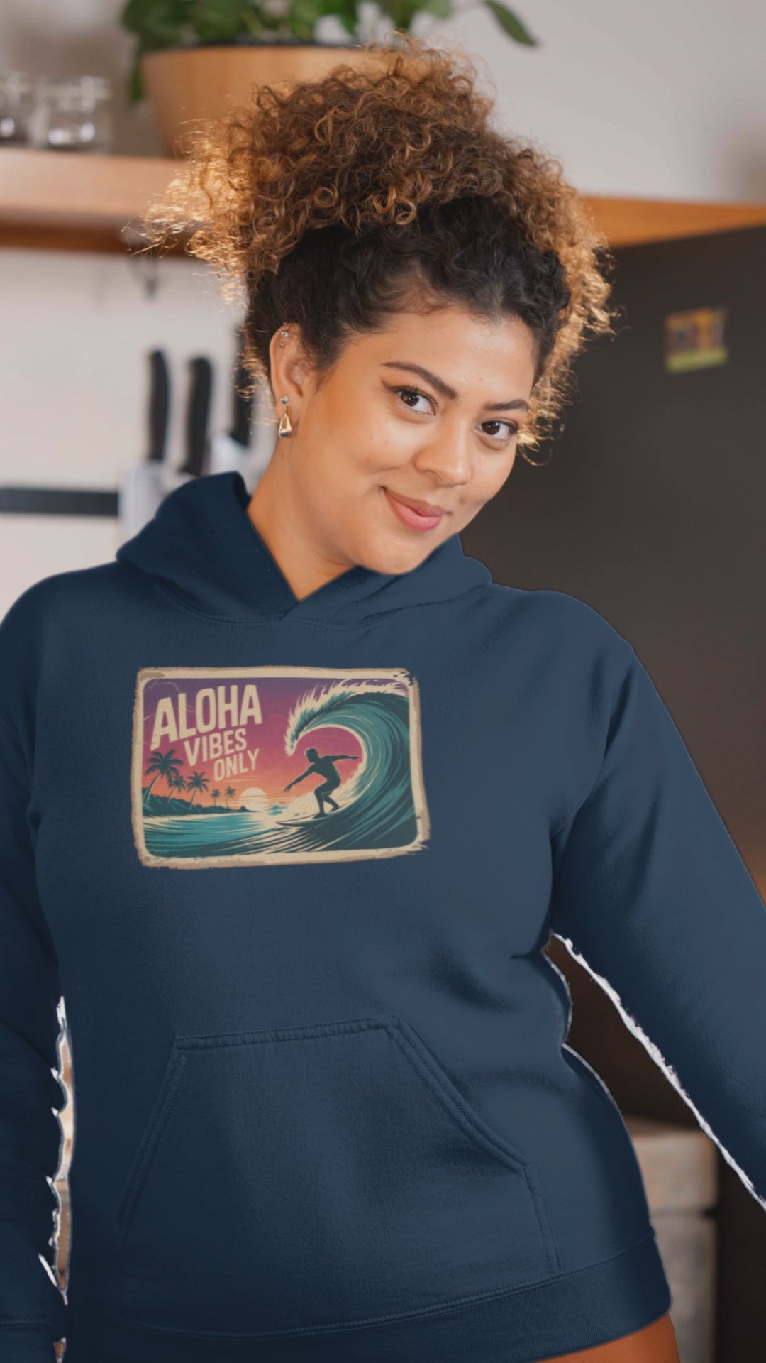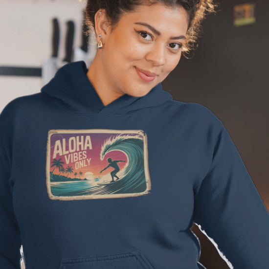 Aloha Vibes Only Hoodie, Retro Surf Sweatshirt for Beach Lovers, Surfers & Outdoor Life