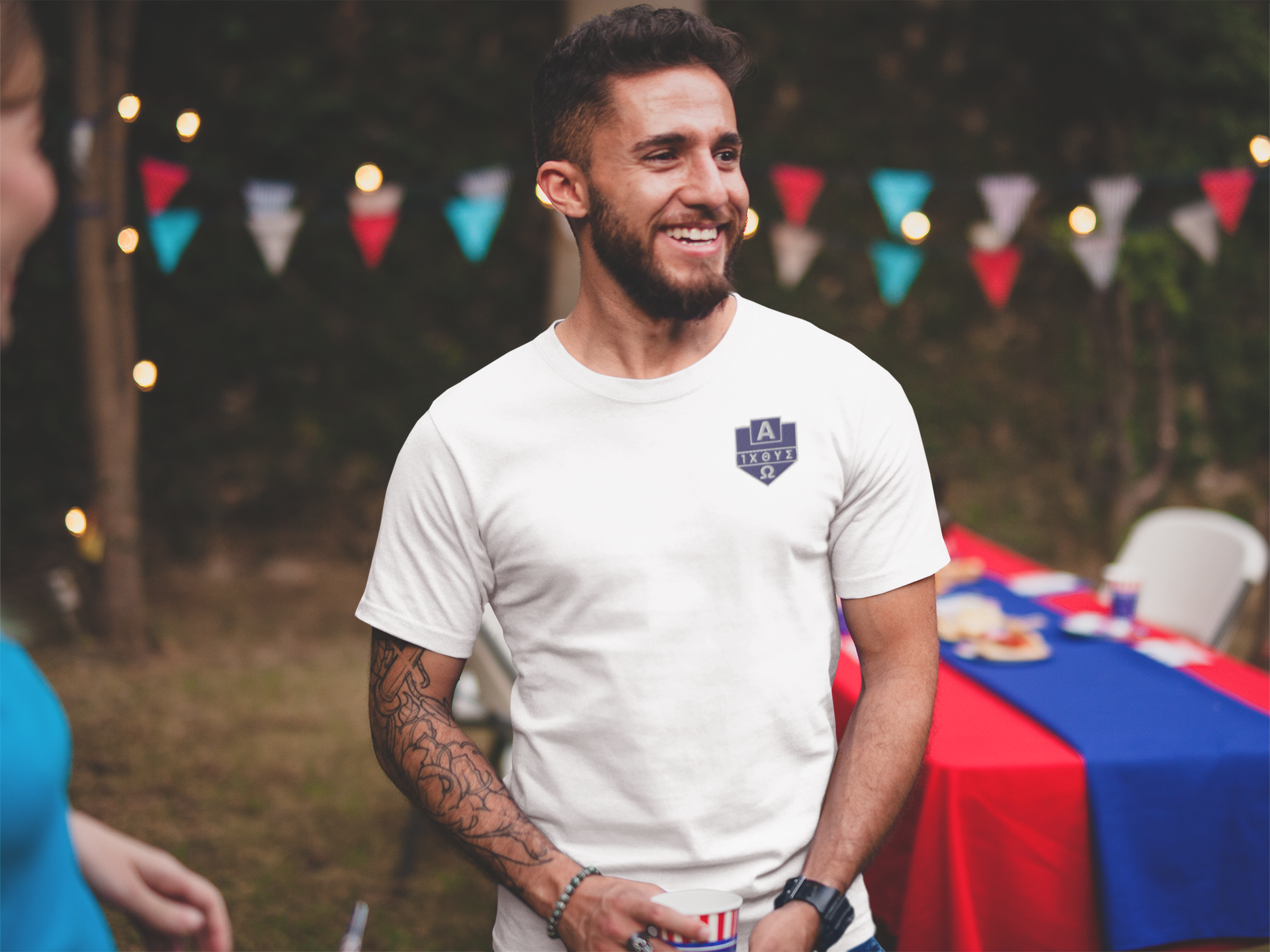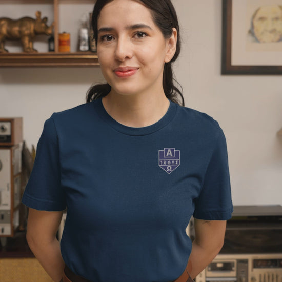 Alpha Omega ICTHYS Greek Shield Embroidered T-Shirt