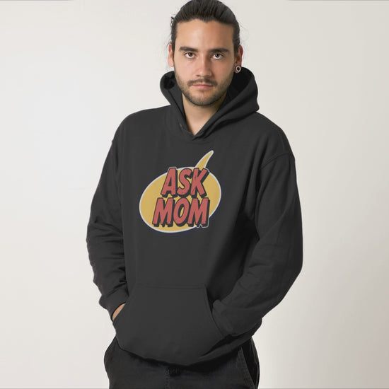 This ASK MOM Hoodie is the ultimate blend of humor and nostalgia. With bold distressed red text inside a yellow comic-style speech bubble, it channels the energy of vintage superhero comics in a playful, family-friendly way. Printed with premium Direct to Garment technology, the design stays vibrant and soft to the touch even after countless washes.
