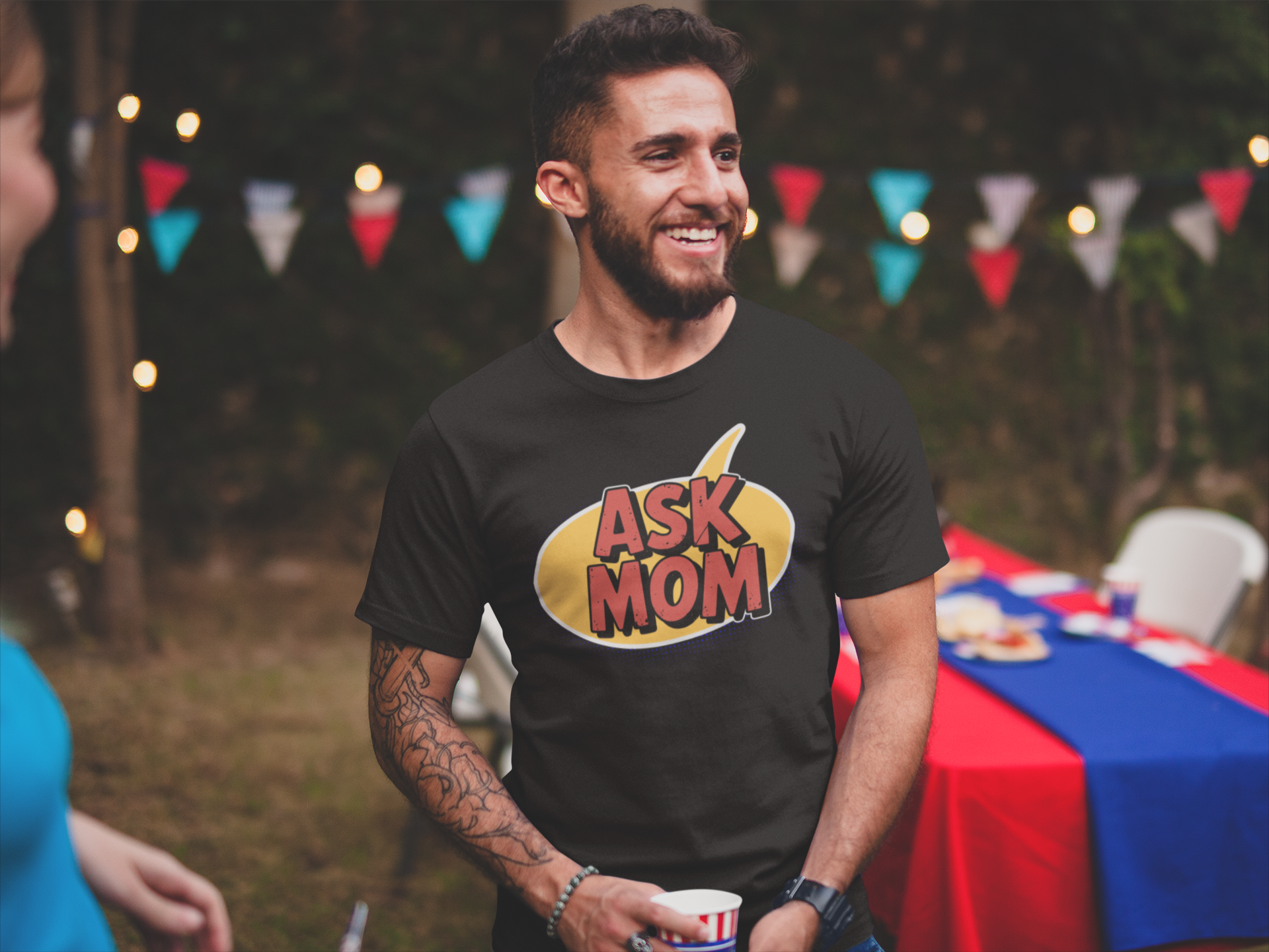 ASK MOM Comic Speech Bubble T-Shirt Funny Retro Dad Gift for Father’s Day Vintage Comic Book Style Tee