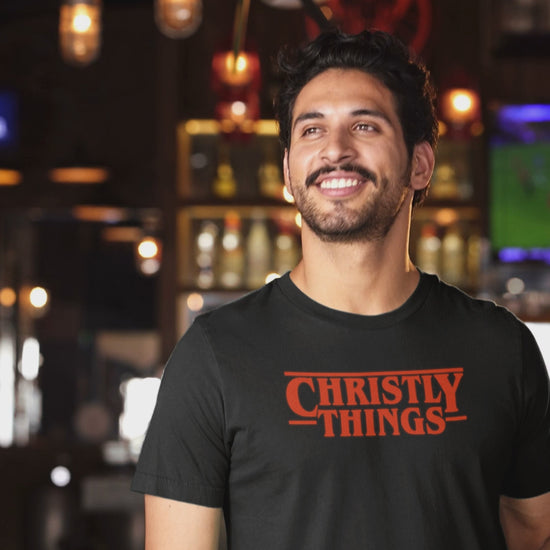 Faith meets fandom in this Christly Things tee, a clever spin on the iconic Stranger Things logo. It’s bold, funny, and designed for believers who appreciate a good pop-culture twist with their message. The clean red-on-black print instantly pops, sparking smiles and conversation wherever you go.