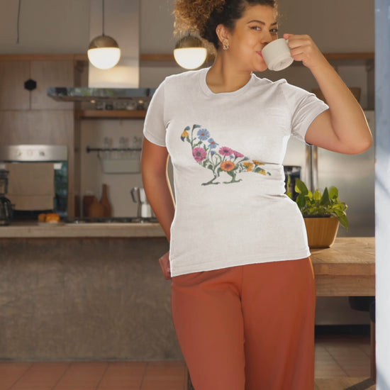 Soft, breathable cotton gives all-day comfort while the vivid Direct to Garment print captures every petal and feather in stunning detail. It’s a wearable garden for anyone who adores plants, birds, or the cozy charm of cottagecore life.