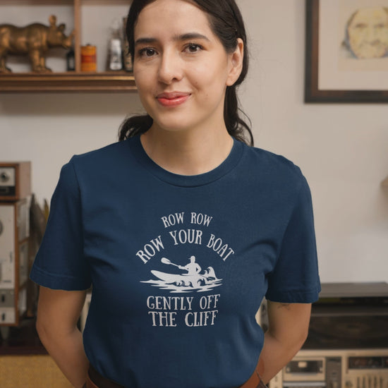Hit the river with a smile in this Row Row Row Your Boat T-shirt; a fun, tongue-in-cheek design made for kayakers, rafters, and canoe lovers who live for the water. The graphic features a bold, clean line illustration of a paddler mid-stroke, making it the perfect mix of humor and adventure spirit.