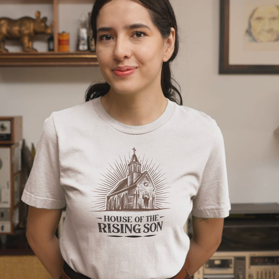 This “House of the Rising Son” T-shirt brings together faith, art, and a clever play on words. Inspired by the iconic song lyric, it’s reimagined to honor Jesus, the true Rising Son. A perfect mix of music culture and Christian meaning.