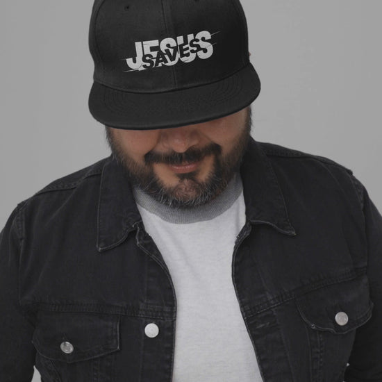 This embroidered “Jesus Saves” snapback hat makes a fearless statement of faith with a sharp, single-color design that’s bold yet minimal. The clean split-letter look adds motion and strength, a perfect mix of streetwear style and spiritual conviction.