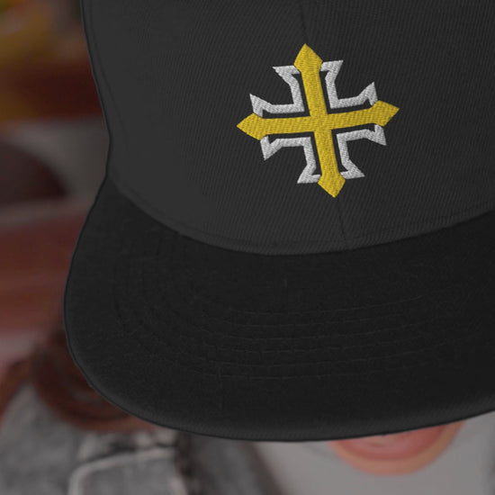 Show your faith with clean, timeless style. This snapback features a minimalist Coptic Cross embroidered in a crisp flat-stitch design. The outer white geometric arms contrast beautifully with the solid center cross, which can be customized in different colors for a look that’s personal and meaningful. It’s subtle enough for everyday wear, yet bold enough to spark conversation.