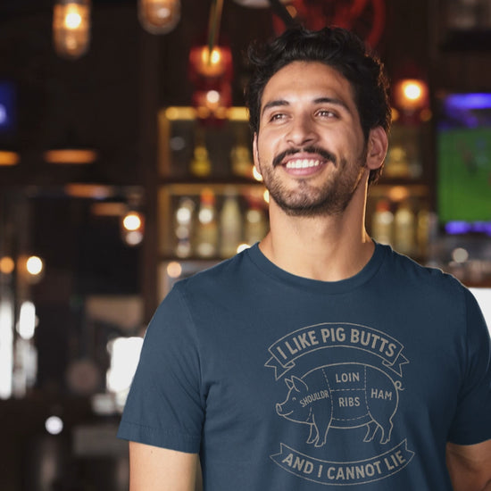 Turn heads at your next cookout with this “I Like Pig Butts And I Cannot Lie” T-shirt — the perfect blend of humor and barbecue pride. The vintage-style pig butcher diagram gives it that authentic smokehouse vibe, while the clean chalk-line design adds a rustic touch. Printed using premium Direct to Garment technology, it’s soft, detailed, and built for long summer days by the grill. Whether you’re flipping ribs, hosting the family BBQ, or just love a good pun, this tee is a conversation starter for every meat lover.