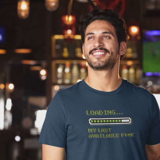 This funny gamer t shirt features a retro pixel style loading bar with the phrase “My Last Available F**k”, the perfect sarcasm boost for anyone who works in tech, loves gaming culture, or just lives on low emotional battery. The 8 bit artwork pops in crisp DTG printing for a bold, clean, and nostalgic look.