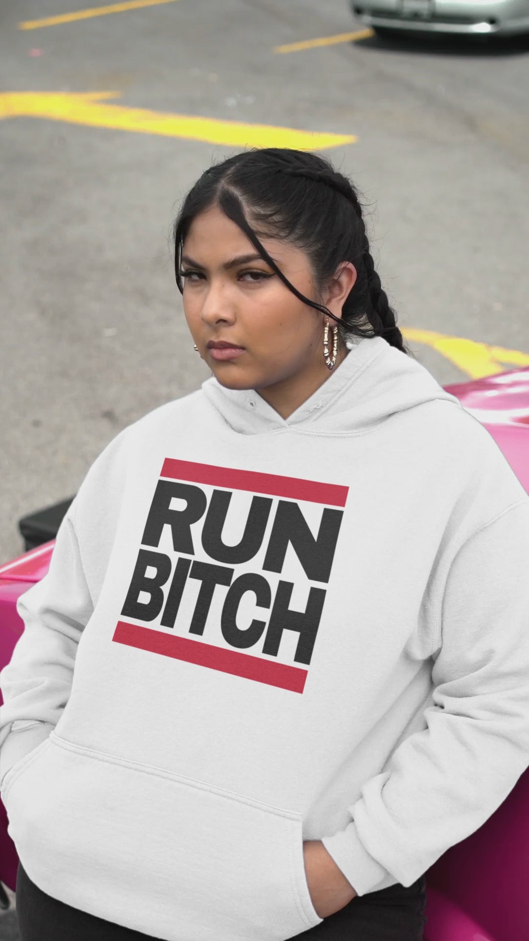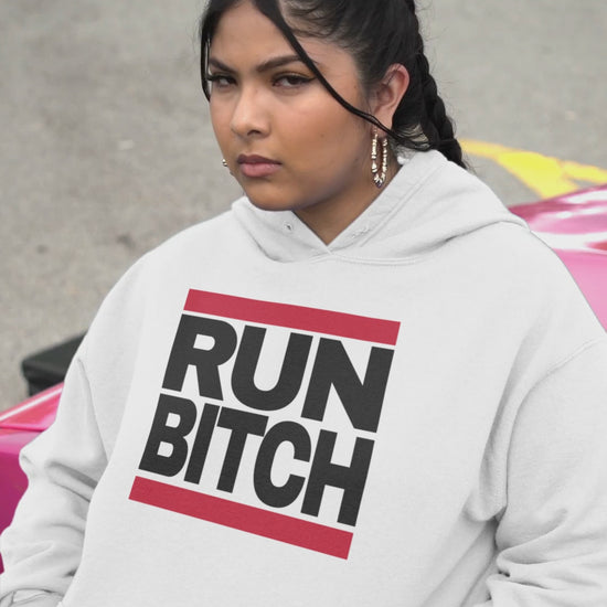 RUN BITCH Hoodie Funny Parody Streetwear Sweatshirt for Hip Hop Fans and Rap Lovers
