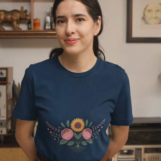 Sunflower and Peony Floral T Shirt Vintage Folk Art Botanical Design for Boho Plant Lovers