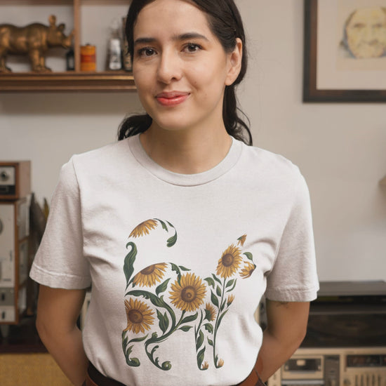 Made on demand, so it’s as unique as your personality. Treat yourself or surprise someone special with a sunny, floral gift. Add this sunflower cat tee to your collection today.