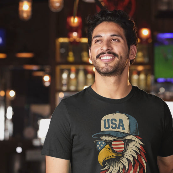 Show off your American pride with this bold Patriotic Eagle T-Shirt. Featuring a detailed digital illustration of a fierce bald eagle wearing USA shades and a baseball cap, this design captures the perfect mix of humor, freedom, and style. The red, white, and blue tones pop against the soft fabric, making it an instant favorite for patriotic events and casual days alike.