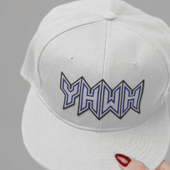 This embroidered YHWH snapback hat boldly displays the sacred name of God in a sharp, angular design that feels both modern and reverent. The geometric lettering gives it a powerful, clean look that stands out without saying too much.